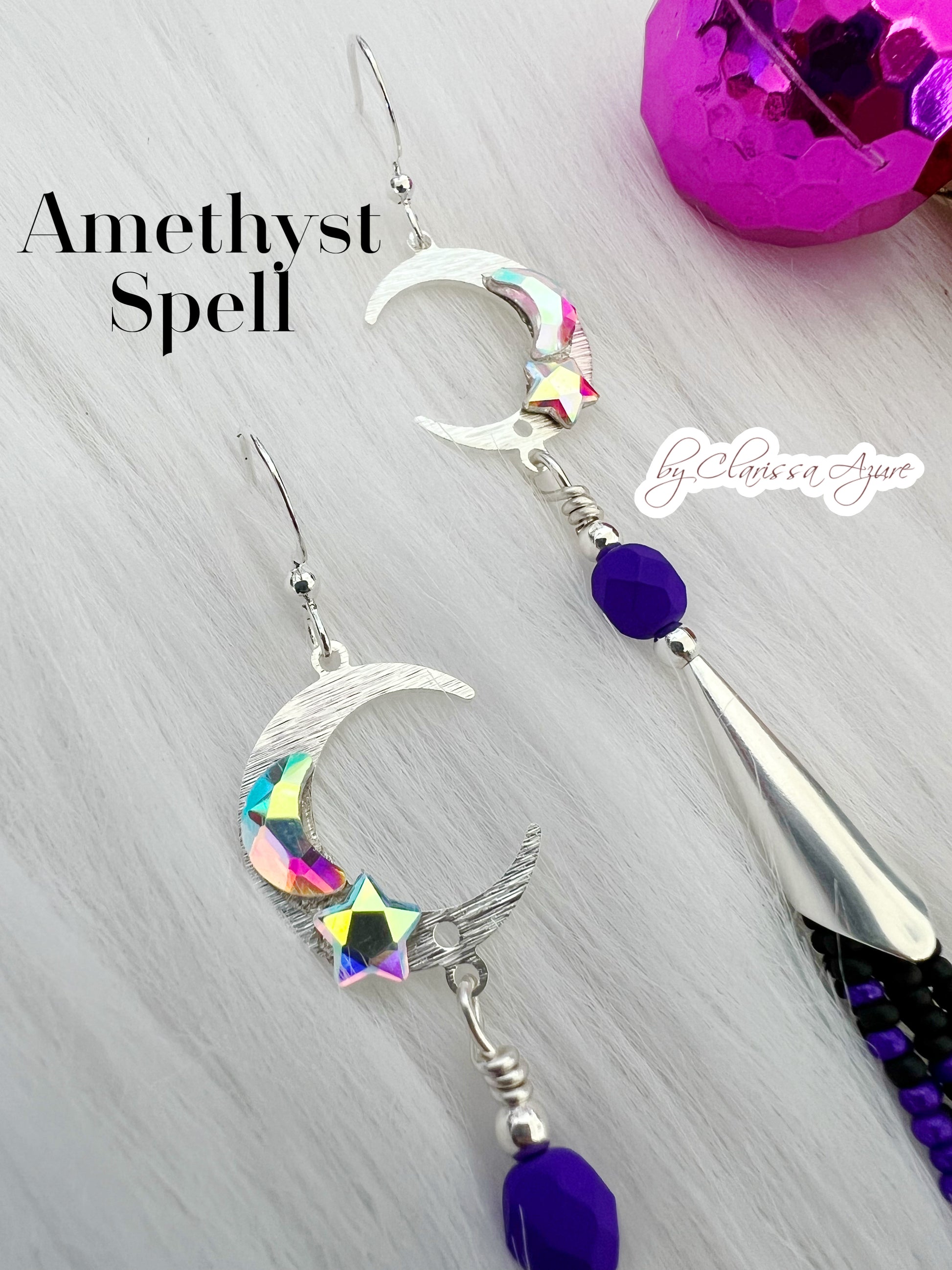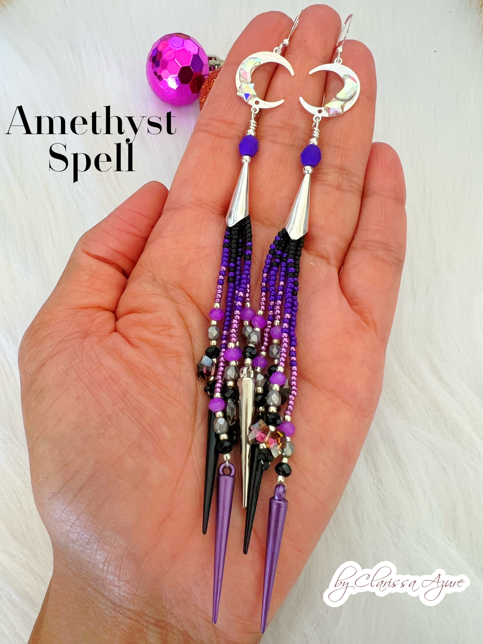The purple pairs measure between 5–6.5”, while the orange pairs are a bold 5” long. Each pair is full of unique crystal details, spikes, and shimmering accents, handcrafted to perfection. These show-stopping statement earrings are perfect for all your Halloween festivities — from costume parties to chic autumn nights out.