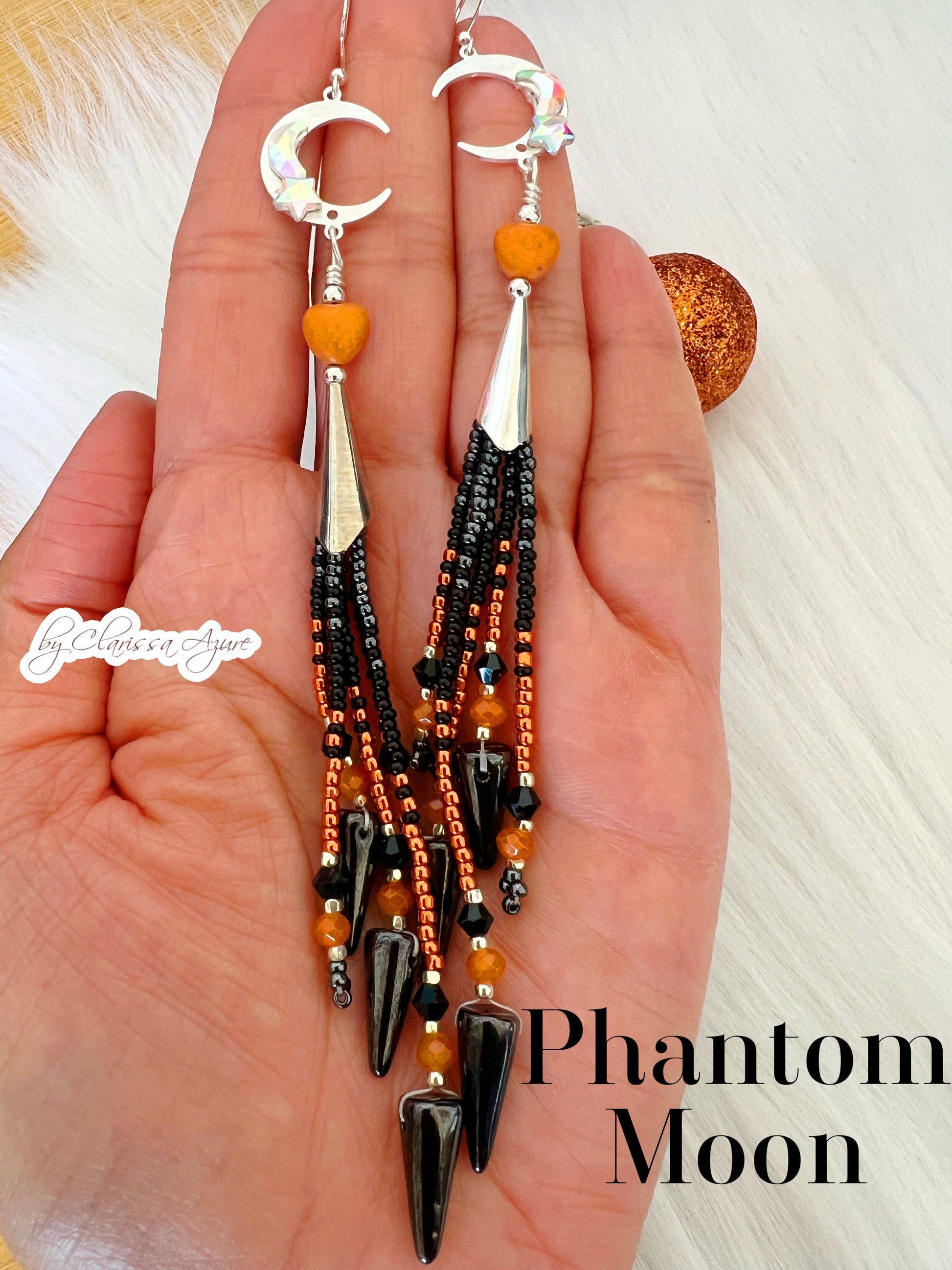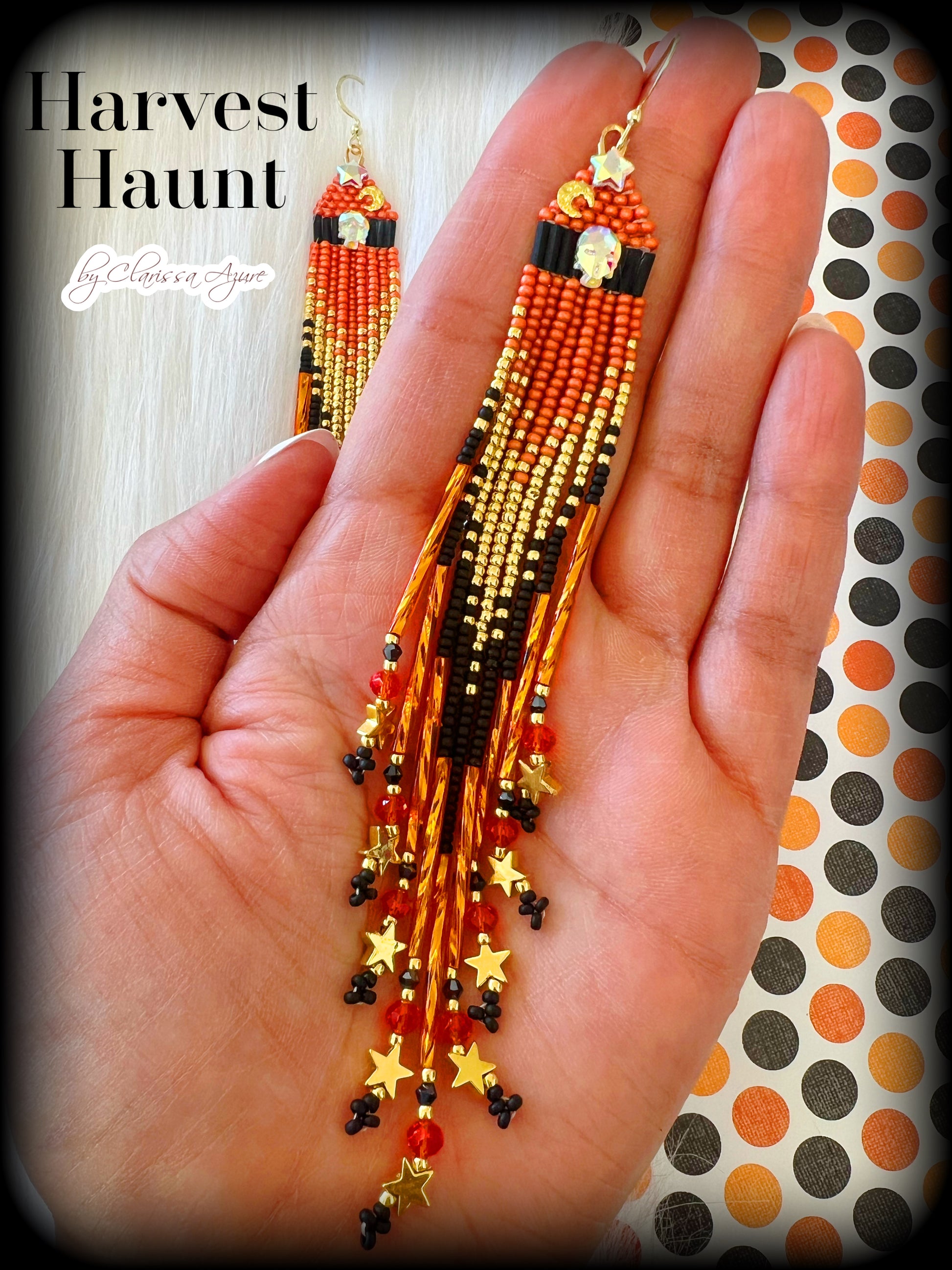 This limited Halloween-inspired release features beaded fringe earrings adorned with sparkling rhinestones, crystal moons, and pumpkin heads with sparkling crystal eyes. Each design captures the magic of the season — elegant, haunting, and full of movement.