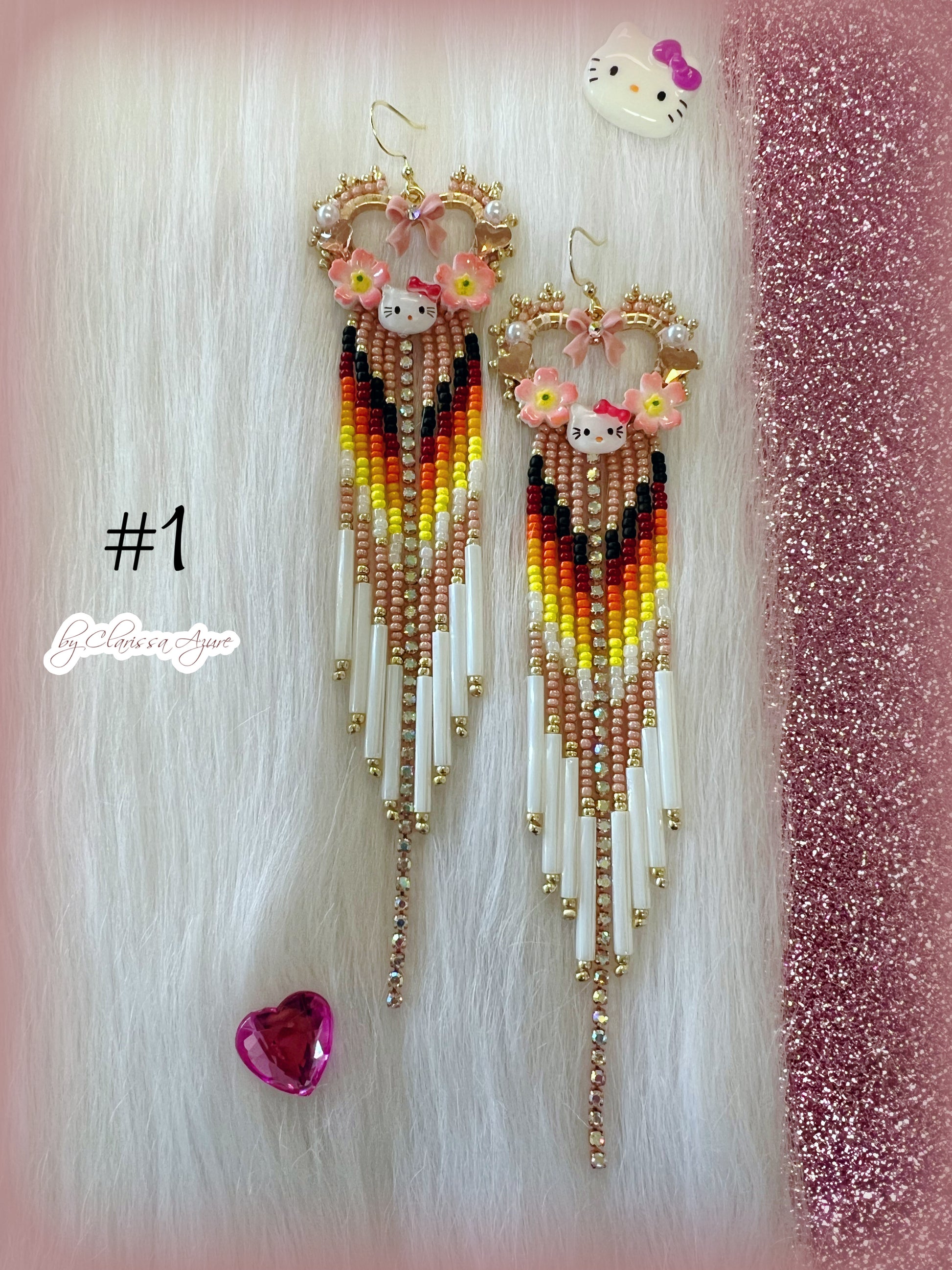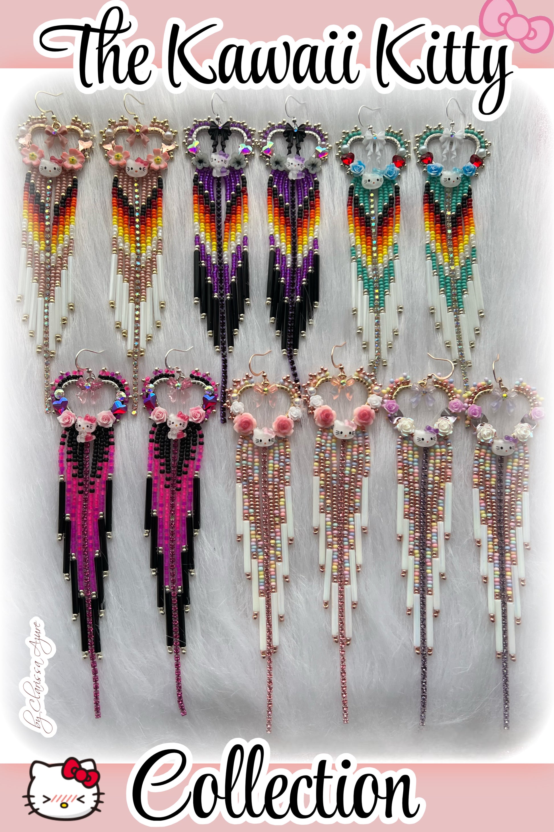 The Kawaii Kitty Collection is here 🎀✨ A playful lineup of fringe earrings in bright, beautiful colors adorned with sweet, sparkling charms. Each pair is full of movement, detailed with shimmering seed beads, bugles, and glittering accents that catch the light with every turn.